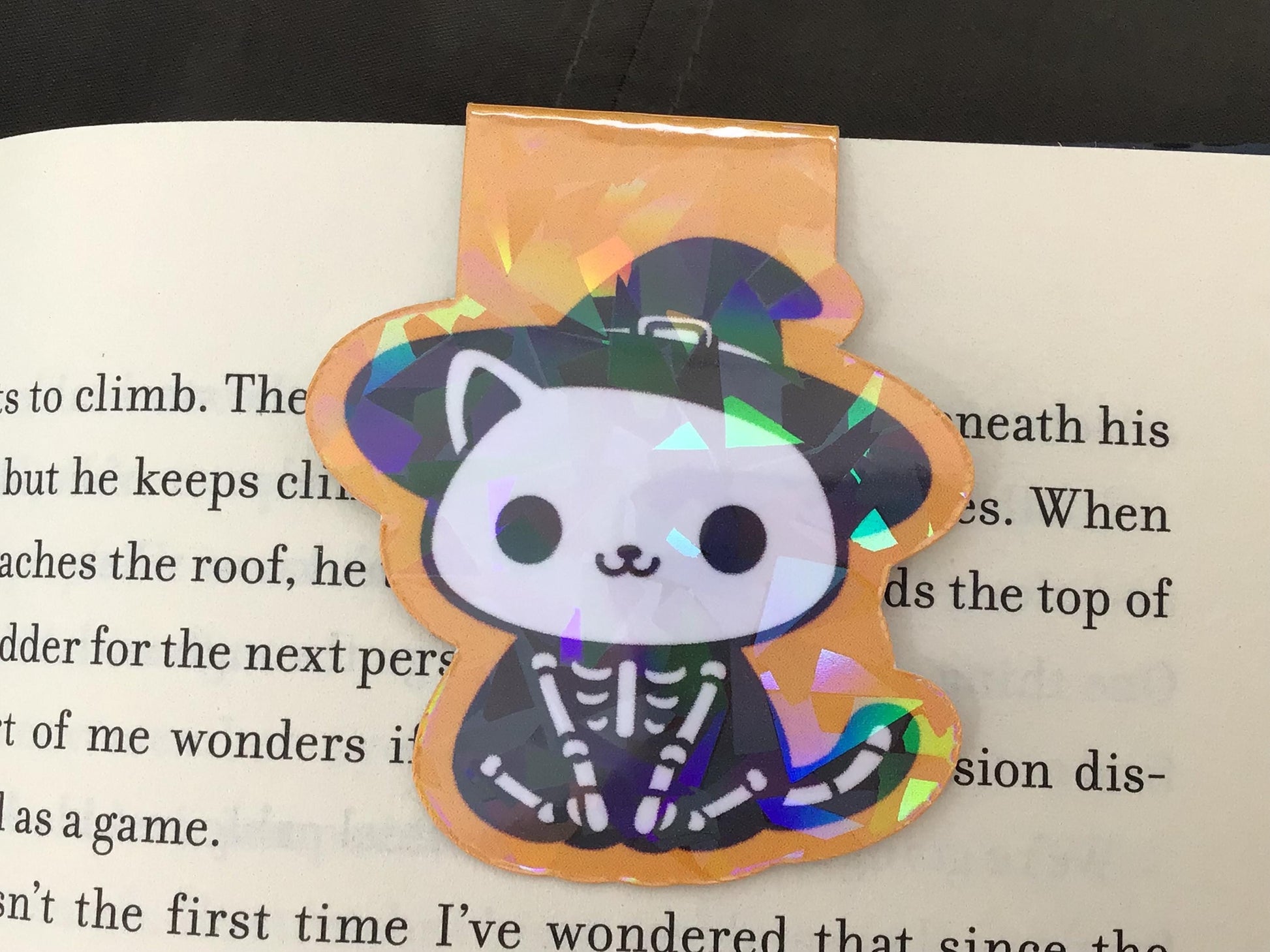 Add a touch of spooky-cute to your reading with this adorable magnetic bookmark featuring a cat in a Halloween costume! Perfect for fall reading, planners, and spooky season journaling, this magnetic page marker is a must-have for cat lovers and Halloween fans alike. Each bookmark is handmade with care using vibrant, high-quality printing on sturdy cardstock, then laminated for durability. The strong magnets ensure it stays snugly in place without damaging your pages. Whether you’re diving into a haunted tale or jotting in your October planner, this little costumed kitty adds charm and fun to every page. Makes a purr-fect gift for readers, students, teachers, and anyone who loves Halloween, cute cats, and cozy fall vibes. Great for trick-or-treat bag fillers, fall party favors, or just a treat for yourself! Check out the other bookmarks in the store.
