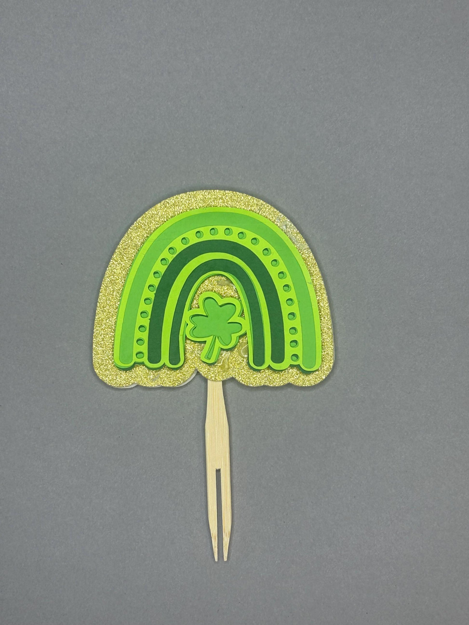 St. Patrick's Day Cupcake Toppers: Layered Paper, Bamboo Fork