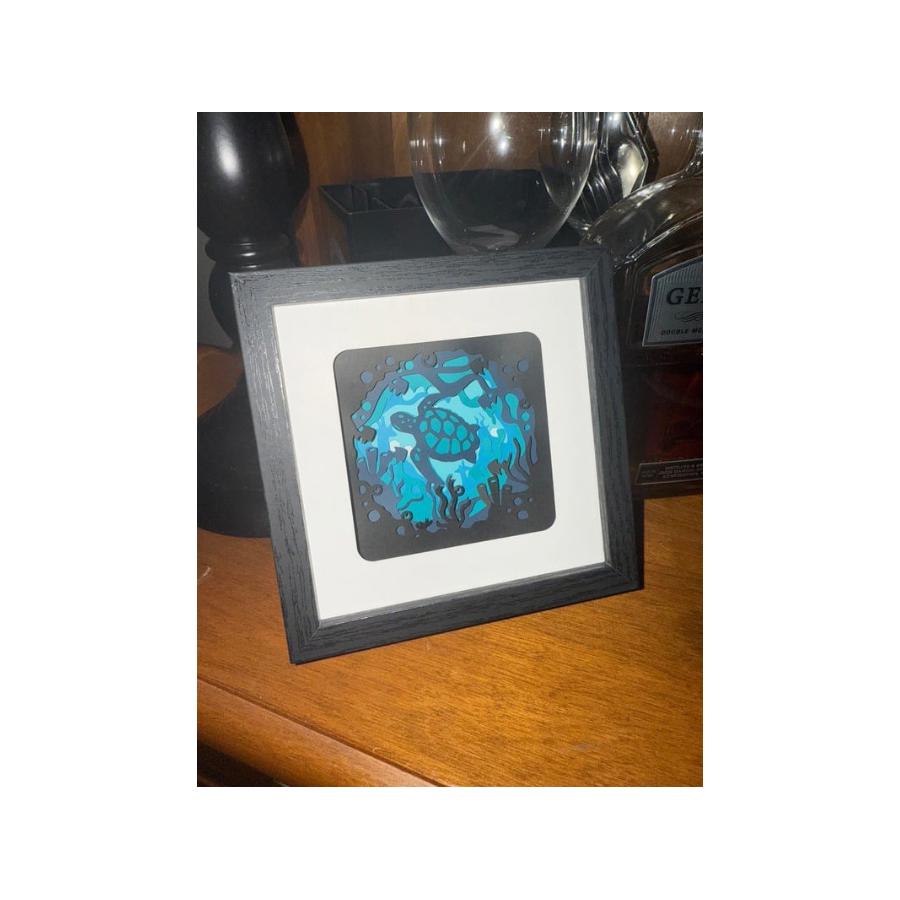 Under the Sea Layered Sea Turtle Shadow Box: Backlit Ocean Art, 5x5 Black Frame