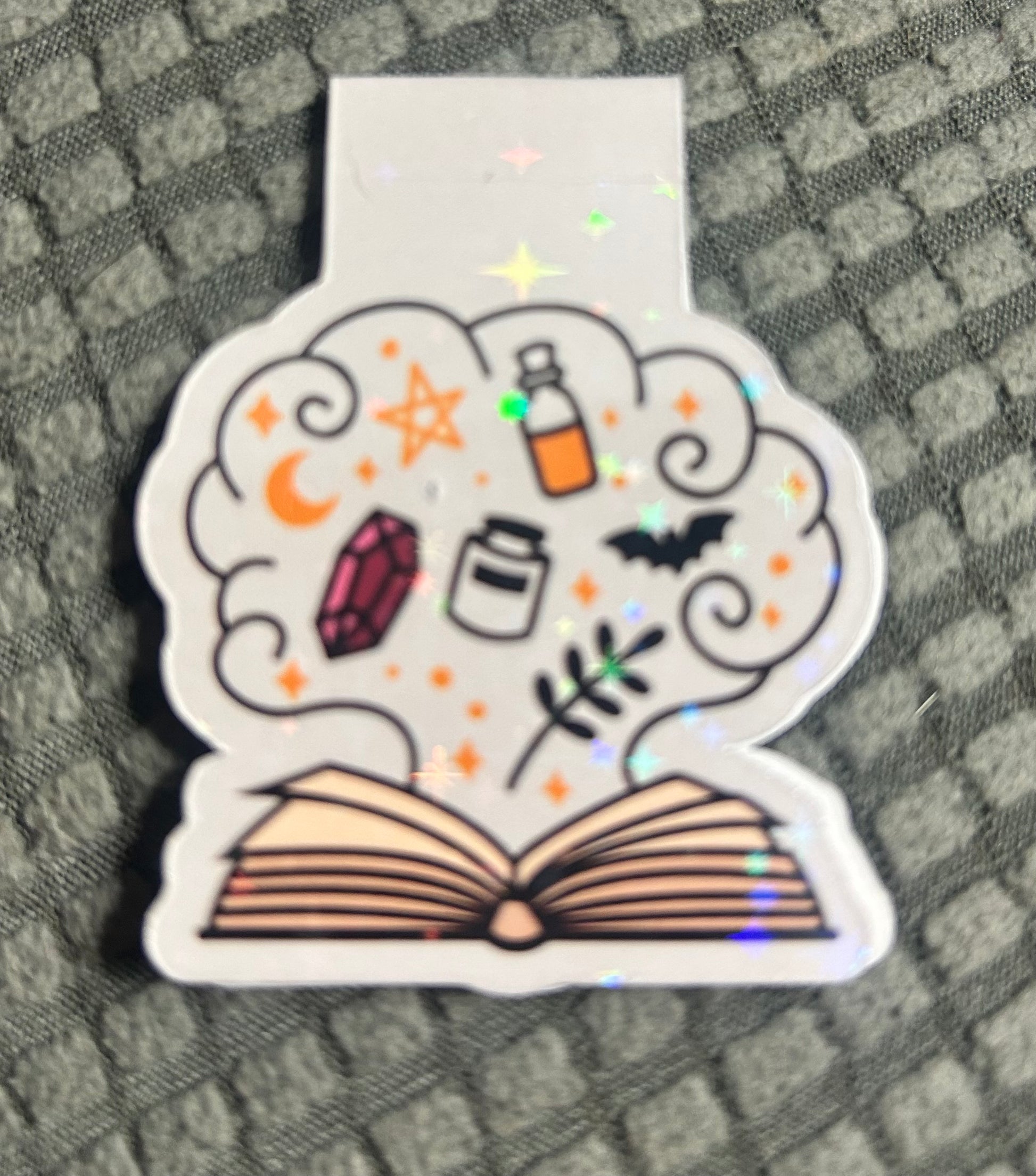 Magnetic bookmarks with Halloween images. Great way to mark your place when going out to Trick or Treat. Dragons, Potions, Spooky Tree, or a Skull.